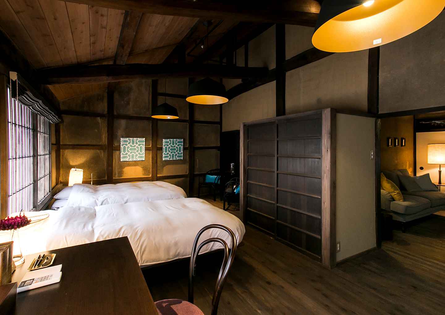 ホテルENを代表する母屋にあるお部屋で、フロントやダイニングまでのアクセスが最も便利です。酒造場だったころの面影が色濃く残り、木の香りがとても良いお部屋です。その希少性は有形文化財に登録されています。