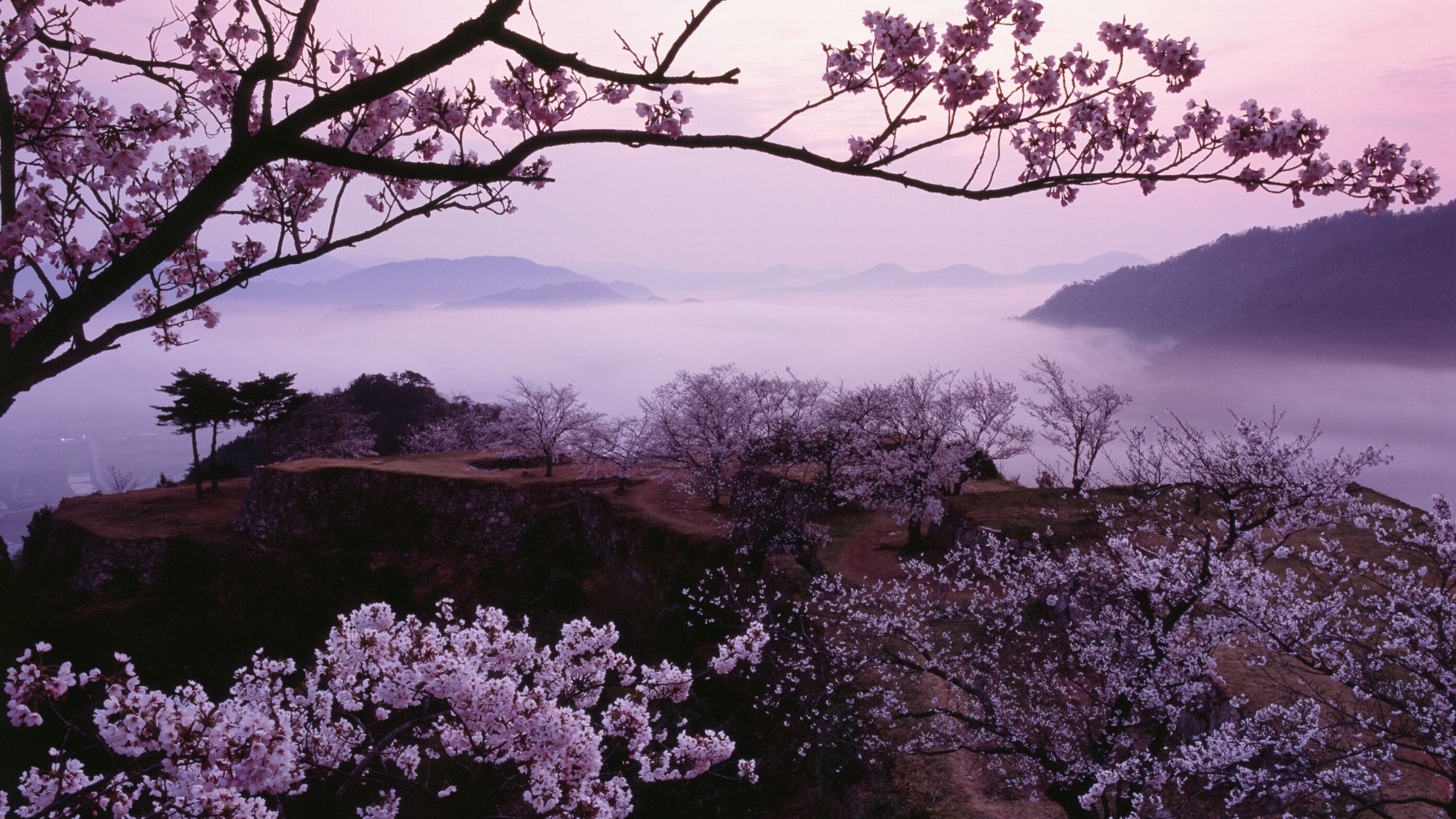 晩秋の雲海が有名ですが、春にはソメイヨシノをはじめとする30本以上の桜が咲き誇り、