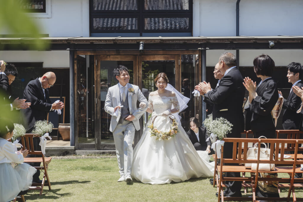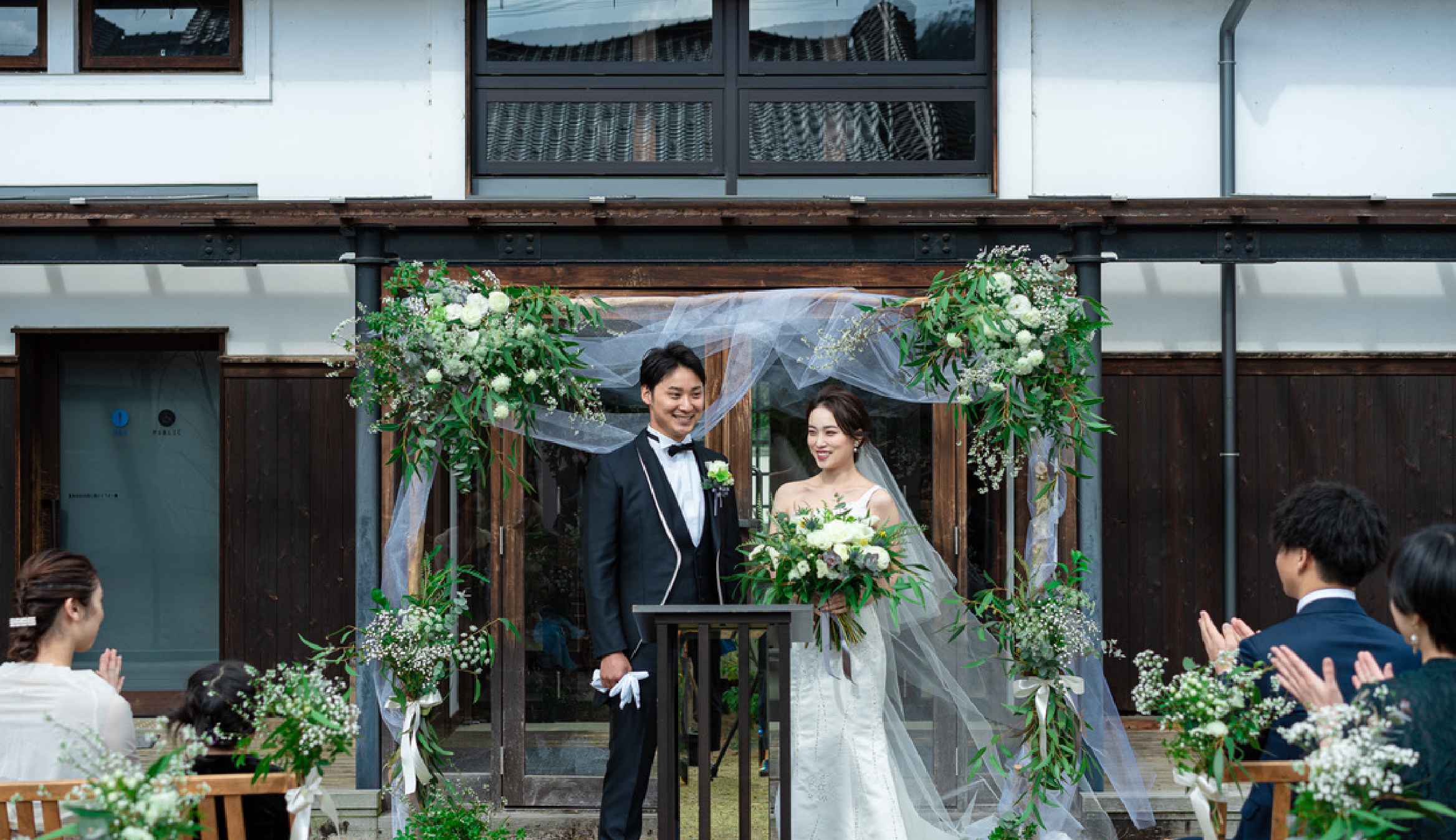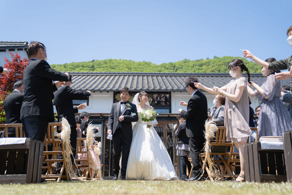 一日一組限定の貸切ウエディング。歴史ある蔵を改修したモダンな空間で、ゲストと心ゆくまで過ごすアットホームなパーティ。選べる挙式スタイルで、理想の一日を。