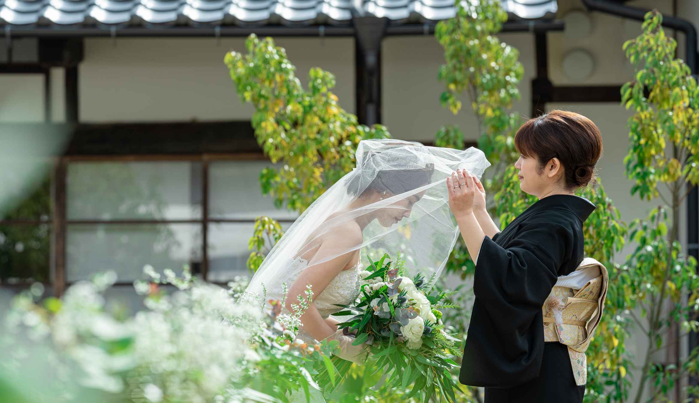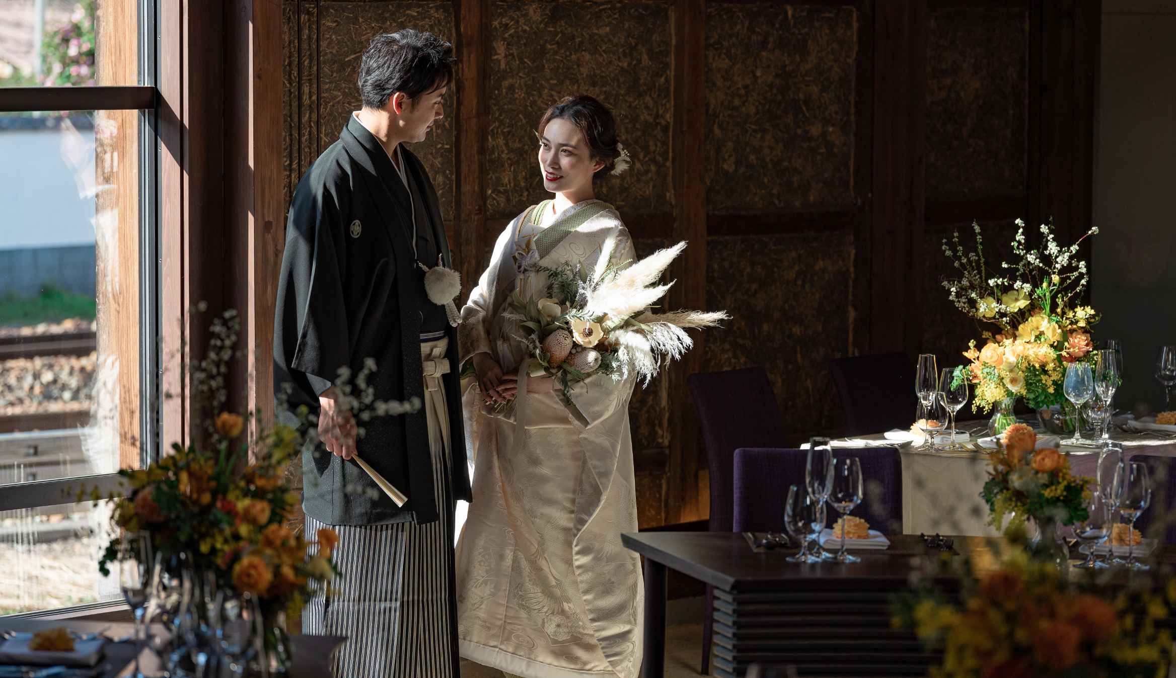 特別なロケーションと洗練された和モダン空間で残す写真はおふたりにとってかけがえのない一枚に。洋装も和装も凛と映える空間で、ふたりの思い描くフォトウェディングを心を込めてお手伝いします