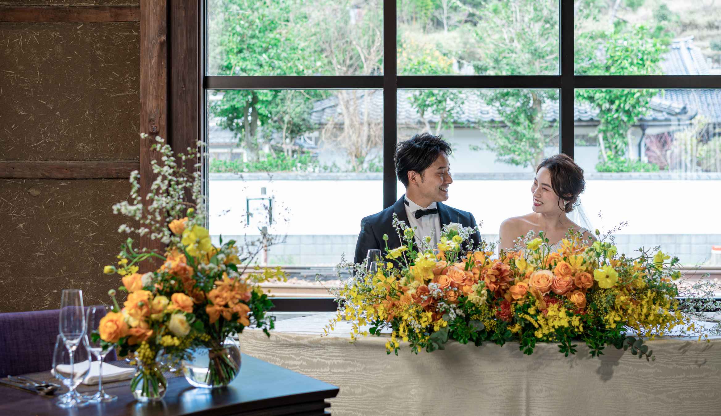 酒蔵時代の面影が館内の随所に残っています。この地で培われた伝統や文化に現代の意匠を纏い、モダンでスタイリッシュな洗練された空間に。時を超えて受け継がれる「本物」に宿る特別感がふたりのウエディングを彩ります。