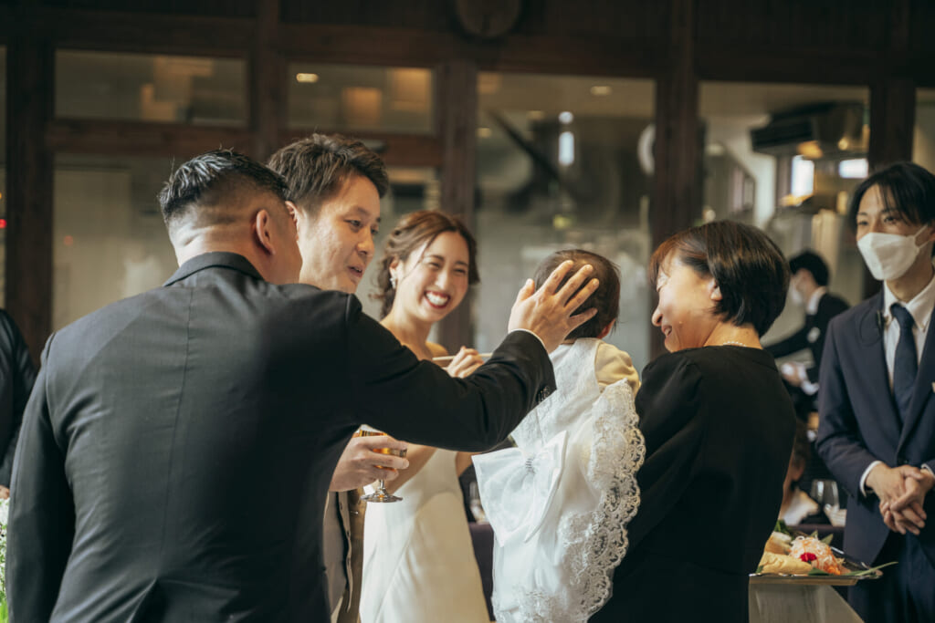 人一倍家族愛があふれる新郎様新婦様。現在おふたりは、お子様と2匹の愛猫とともに、海外にお住まいでいらっしゃいます。海外在住であること、また世界情勢に鑑みて、これまでご両家が集まる場を控えられていましたが、頃合いを見計らって挙式を決意されたおふたり。ご両家のご縁がさらに深まる祝福の一日となるよう、当日まで心を込めてご準備くださいました。