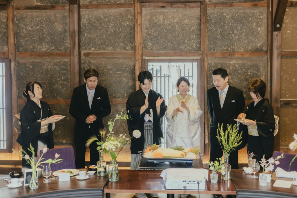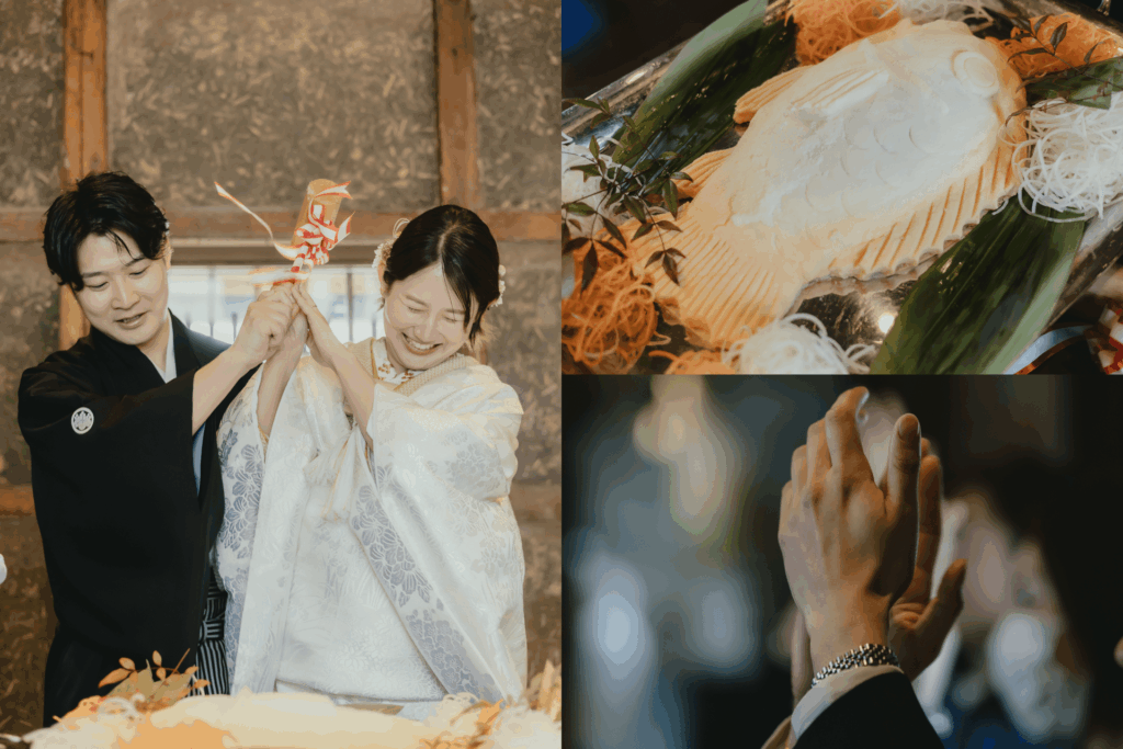 そしてお料理では、おふたりの和装がよく映える“鯛の塩釜開き”を取り入れられました。