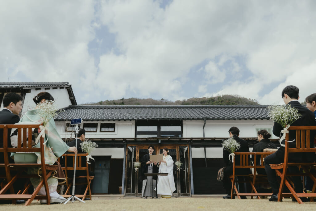 穏やかな風がそよぐガーデンで行われた人前和婚式。