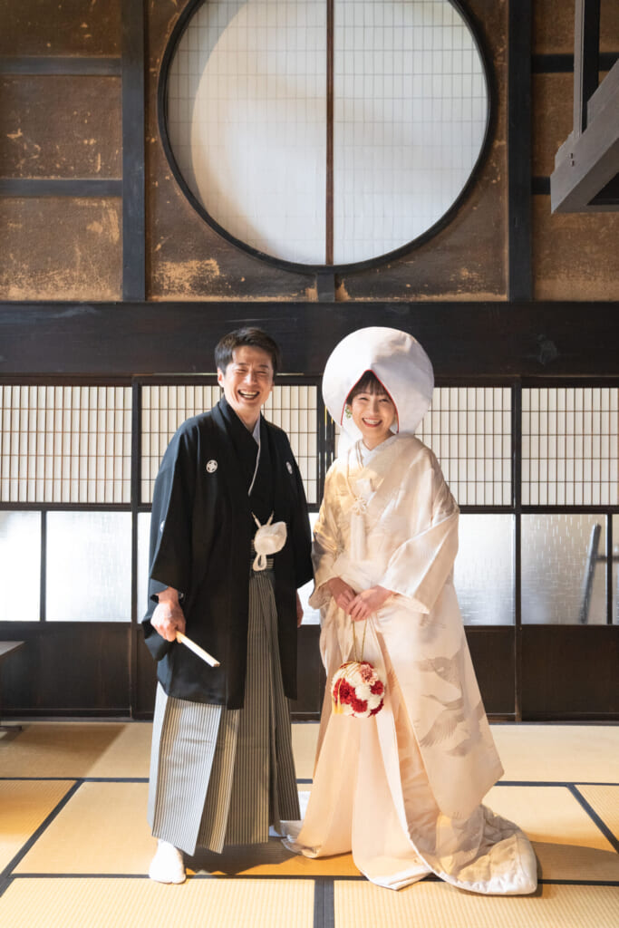 スクリーンに映し出されたエンディングムービーでは、前撮りのお写真をお披露目なさいました。前撮りでは和装衣裳をお召しになり、当日とはまたちがう雰囲気の新郎様新婦様のお姿に、会場の皆様の目が釘付けに。こちらまで明るい笑い声が届いてきそうなおふたりのはじける笑顔が、これからのおふたりの明るい未来を象徴するかのようでした。